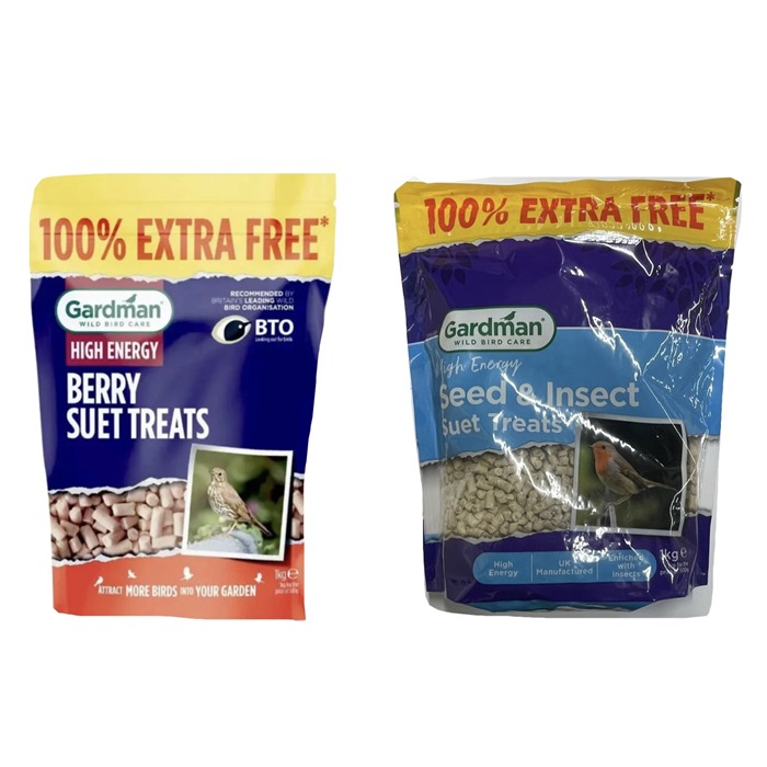 Gardman Suet Treats are high in energy to help fuel birds for longe. These easy to eat pellet-shaped Suet Treats are a superb way to give a wide variety of wild birds a real energy boost. High energy suet treats in re-sealable pour pack. Recommended all year round feeding but an excellent winter food. For use in suet treat feeders, bird tables and ground feeders.